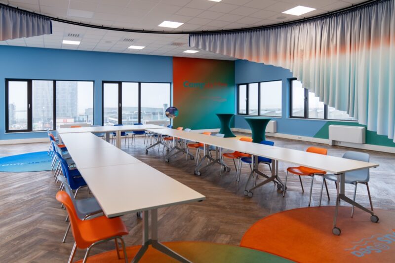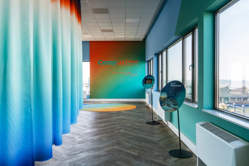 The Campus Event Space is the premier location for events that align with the goal of Campus@Sea: to stimulate innovation around the sustainable multiple use of the North Sea. With its virtually 360-degree view of the harbour, the sea and the city, the space offers a unique experience reminiscent of Panorama Mesdag.